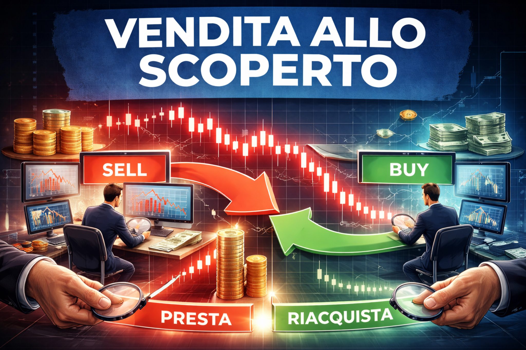 La vendita allo scoperto è una strategia di trading che permette di guadagnare quando il prezzo di un asset scende. Consiste nel vendere un titolo preso in prestito e riacquistarlo successivamente a un prezzo più basso, ottenendo un profitto dalla differenza. Questa tecnica, nota anche come short selling, è utilizzata sia da trader principianti sia da professionisti.
